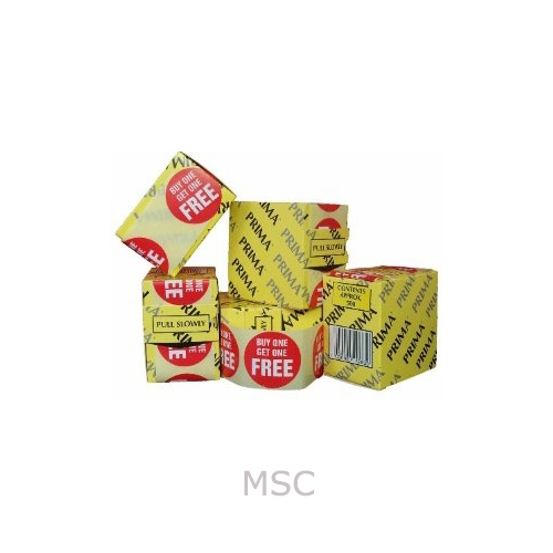 A box of 500 stickers, these uk made stickers are high quaility and are very sticky. With its bright bold red bacground these will stand out on shop floors.